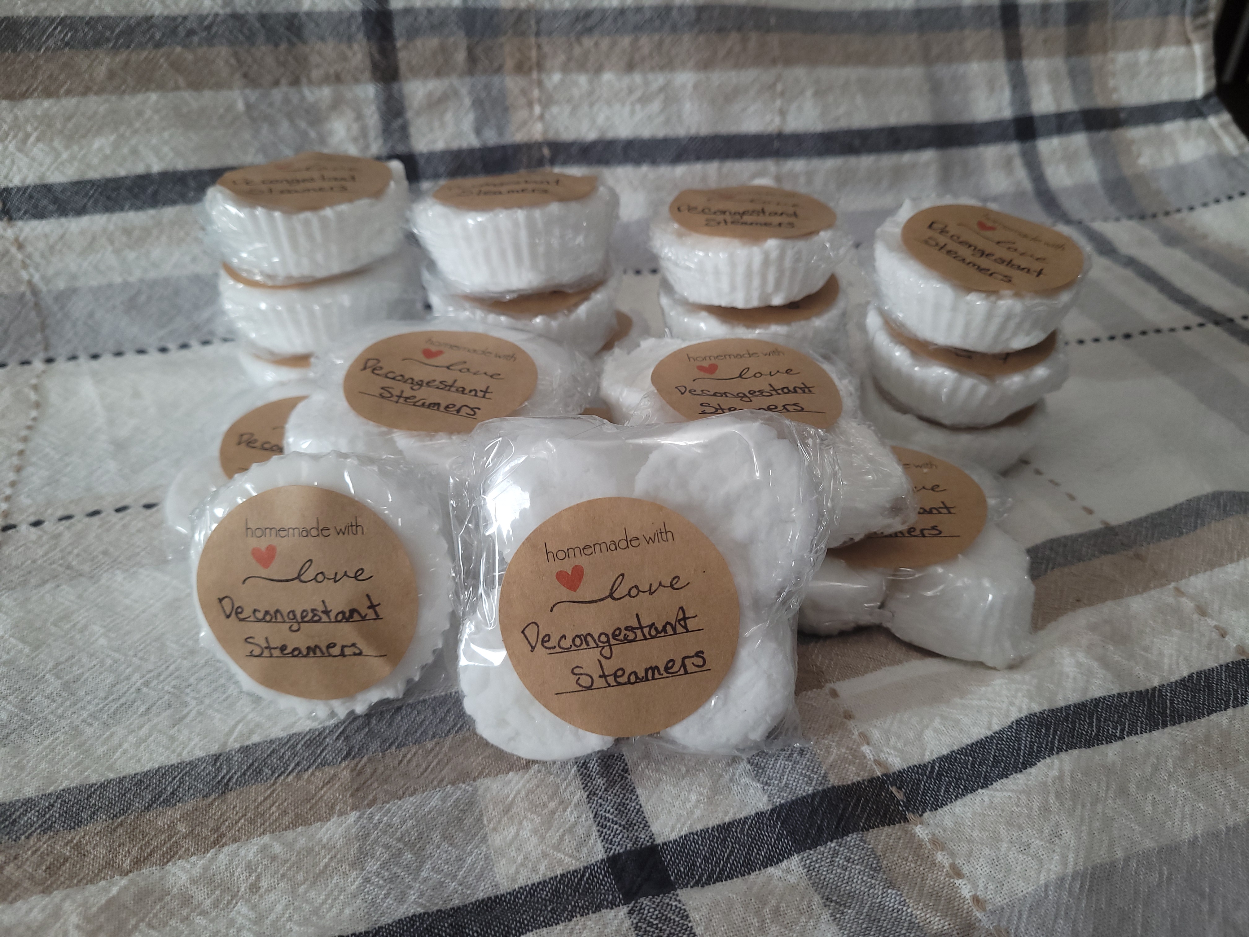 Decongestant steamers work in the shower to help during the cold and flu seasons. Made with all natural ingredients. Just unwrap, place on the drain in the shower and let the decongestant help.